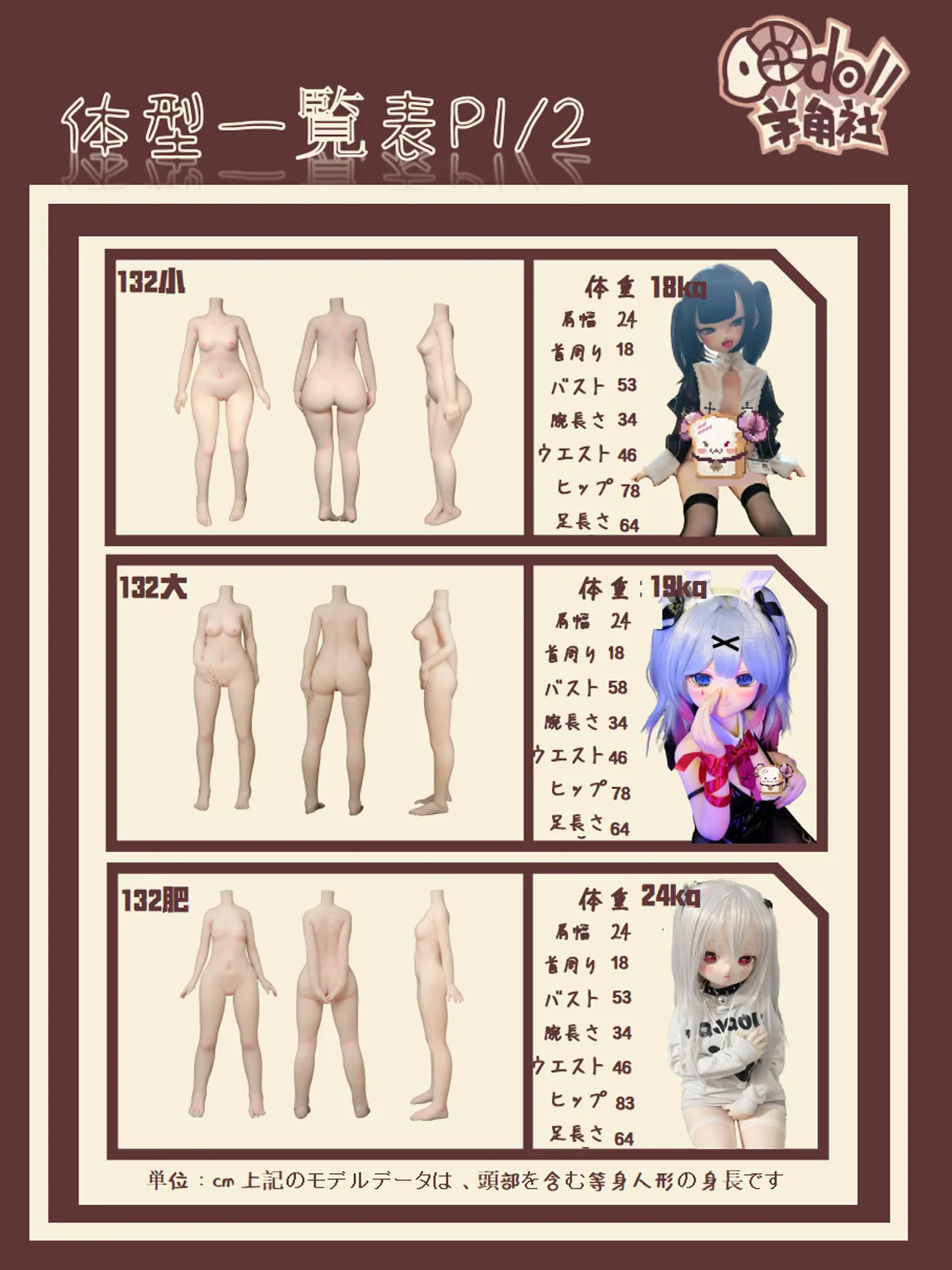 「Aotume Doll」は、105cm~155cmまで幅広い身長のボディが揃っており、好みに合わせて自由に選択できます。